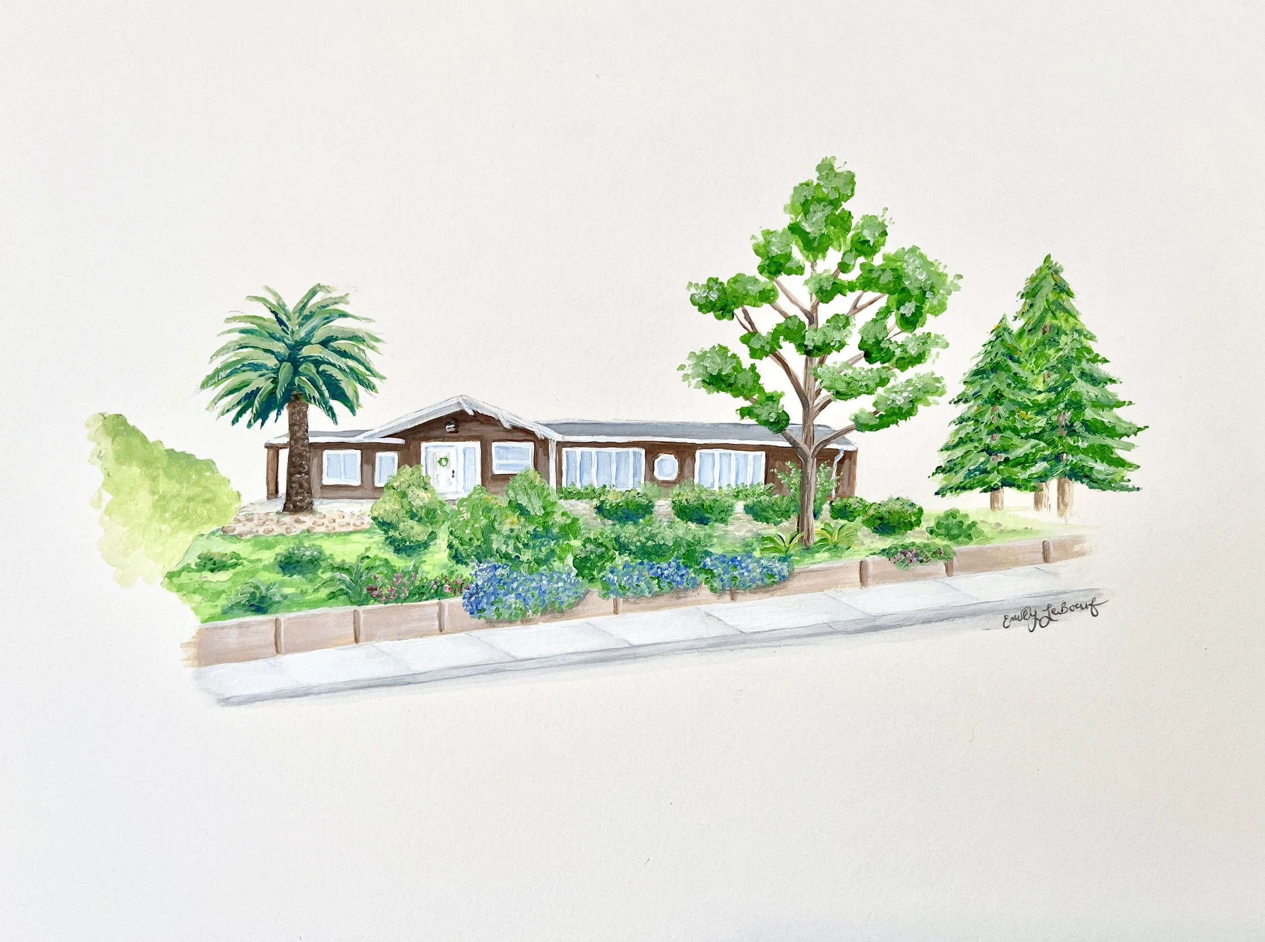 My house and venue paintings are colorful, joyful and whimsical! I use acrylic paint in a soft and illustrative way to capture the places that touch your family’s heart. The paper used is heavyweight, acid free watercolor paper.